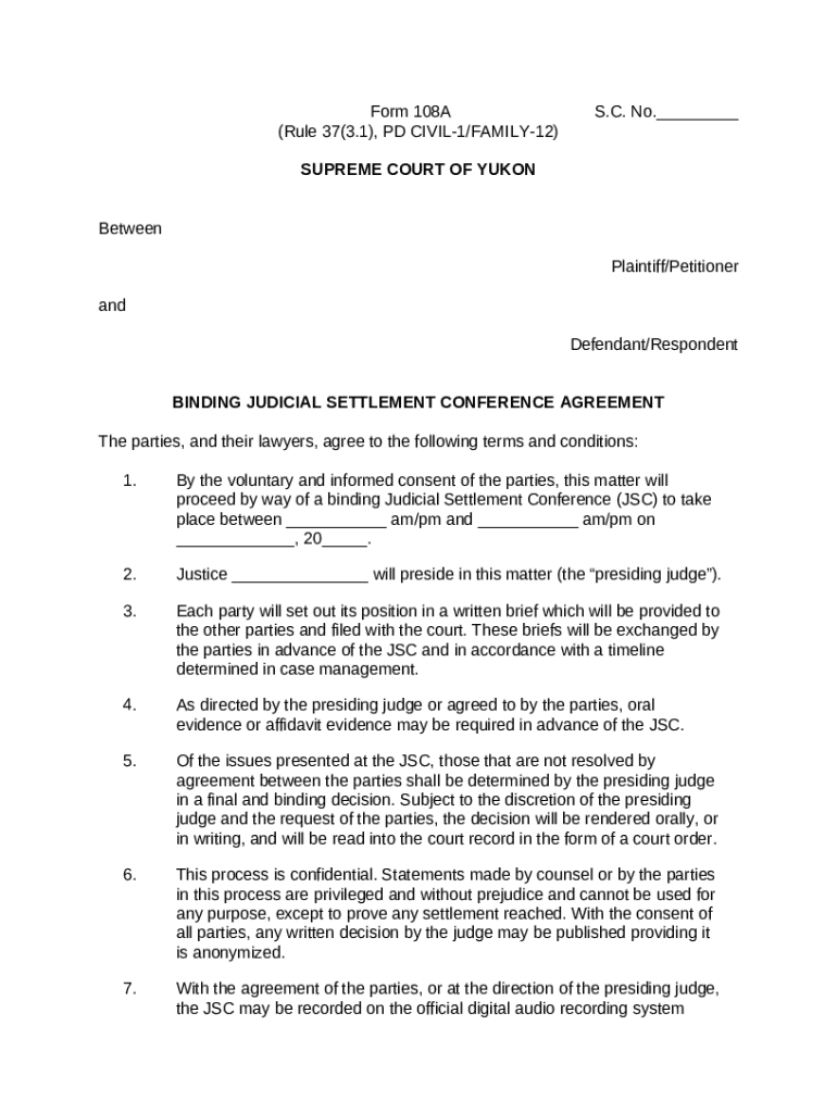 notice #8request for a binding settlement conference by word template: frequently asked questions