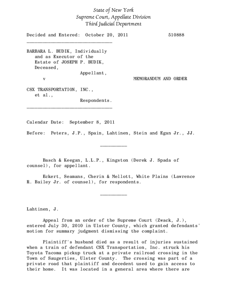 State of New York Supreme Court, Appellate Division Third Judicial Department Decided and Entered: October 20, 2011 ___ BARBARA L. AUDIO, Individually and as Executor of the Estate of JOSEPH P. AUDIO,