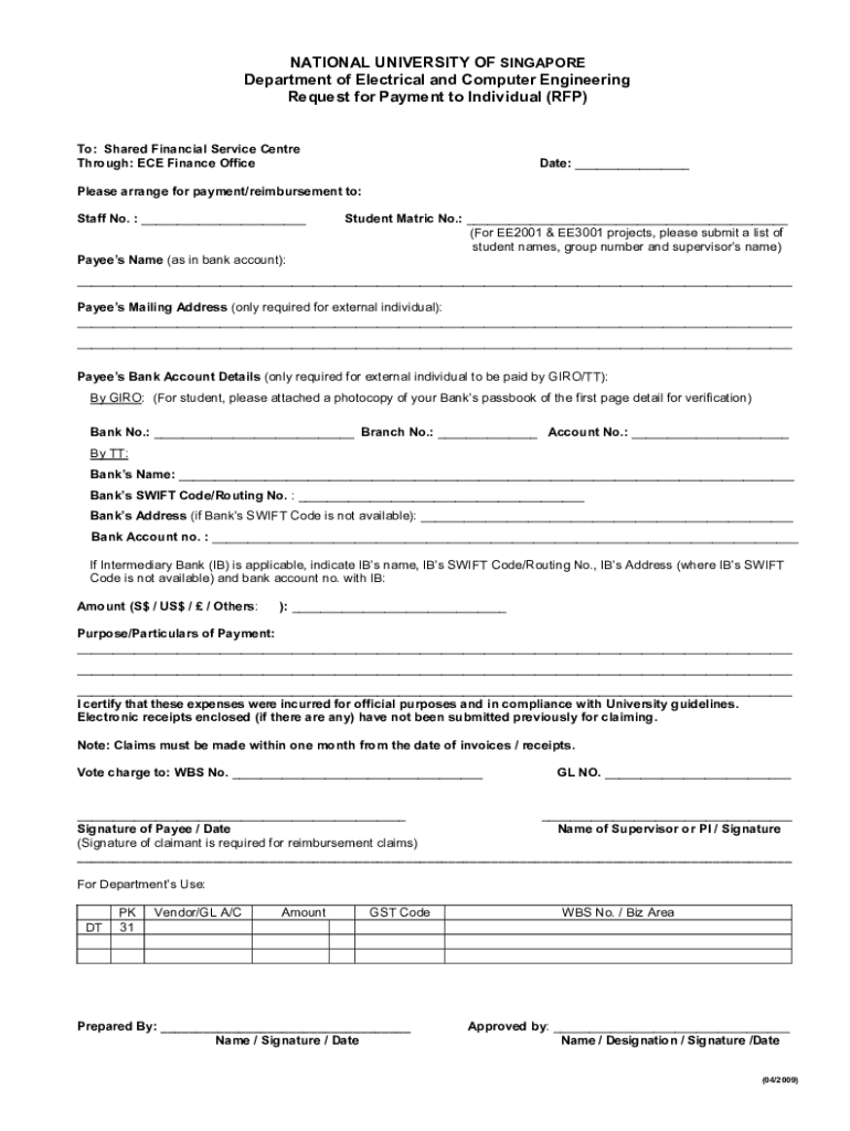 Get the free Request For Payment (RFP) - NUS