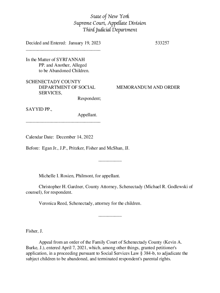 Get the free Appellate Division, Third Judicial Department 19 January ... - decisions courts stat...