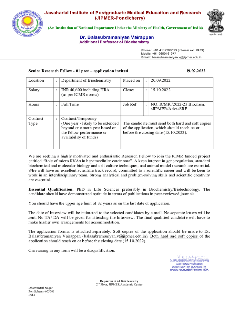Jawaharlal Institute of Postgraduate Medical Education and Research (JIPMERPondicherry) (An Institution of National Importance Under the Ministry of Health, Government of India)Dr. Balasubramaniyan
