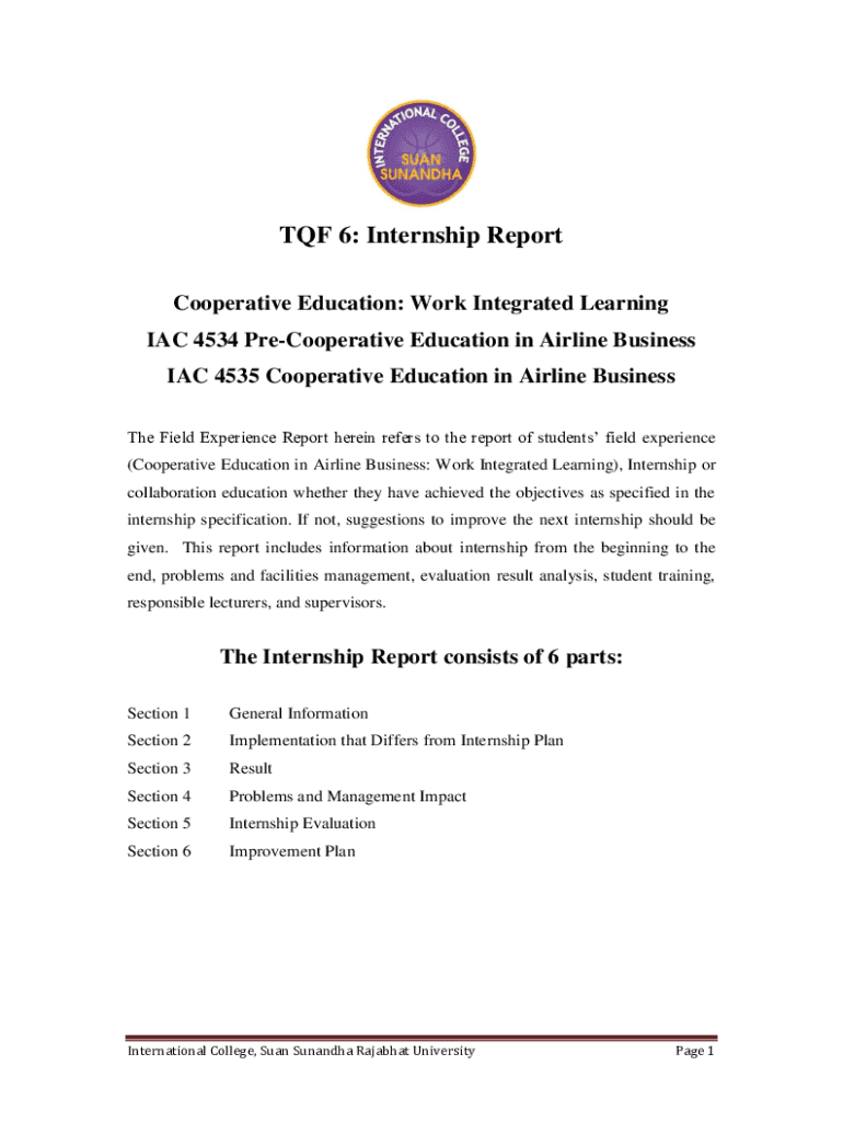 TEF 6: Internship Report Cooperative Education: Work Integrated Learning IAC 4534 Preoperative Education in Airline Business IAC 4535 Cooperative Education in Airline Business The Field Experience