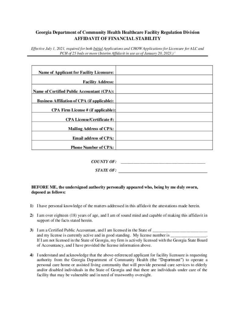 Get the free Personal Care Home Application Packet - Georgia Department of ... - dch georgia