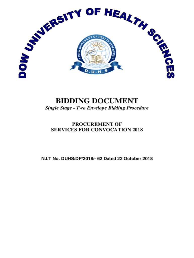 BIDDING DOCUMENT Single Stage Two Envelope Bidding Procedure PROCUREMENT OF SERVICES FOR CONVOCATION 2018 N. I’T No. DUES/DP/2018/ 62 Dated 22 October 2018Dow University of Health Sciences PROCUREMENT