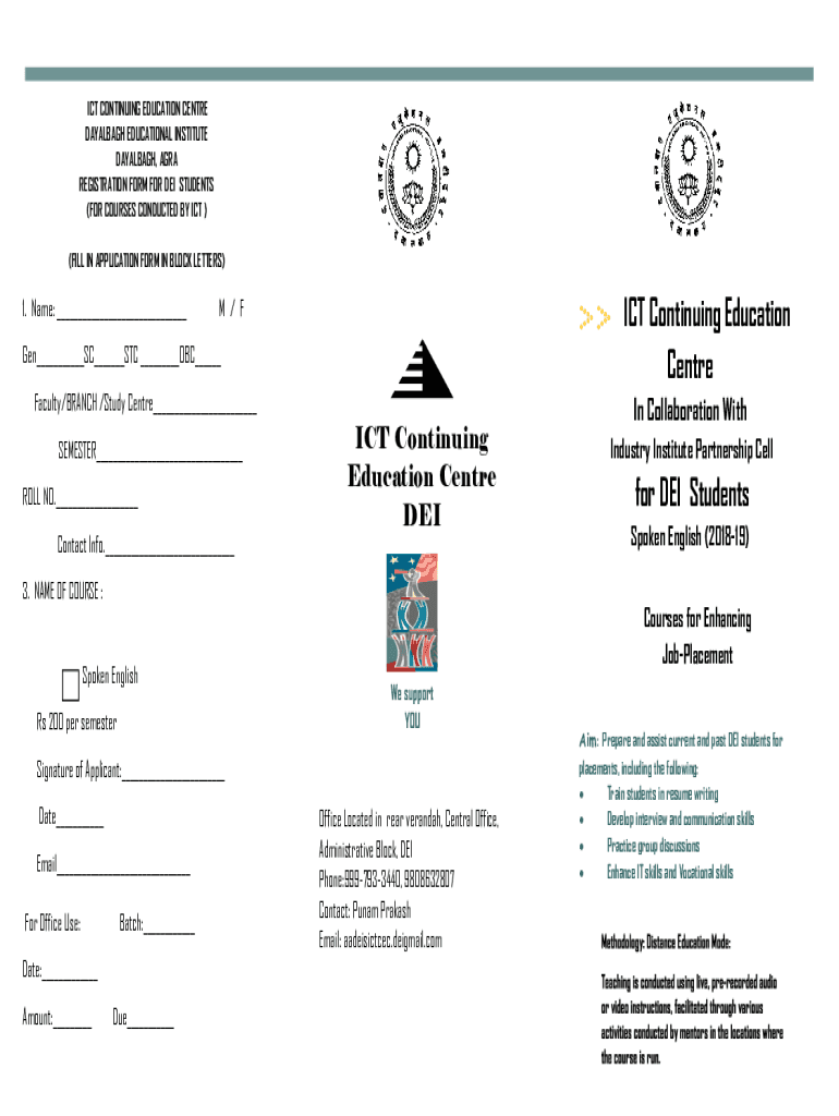 ICT CONTINUING EDUCATION Center DAYALBAGH EDUCATIONAL INSTITUTE DAYALBAGH, AGRA REGISTRATION FORM FOR DEI STUDENTS (FOR COURSES CONDUCTED BY ICT) (FILL IN APPLICATION FORM IN BLOCK LETTERS)1. Name: