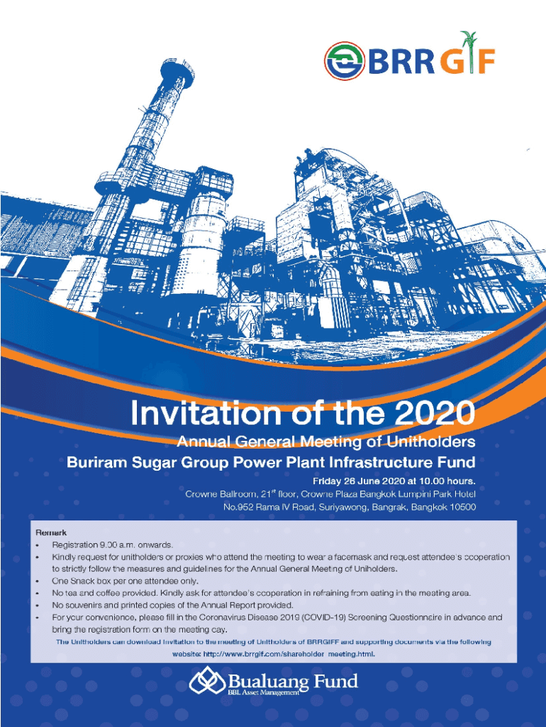 No. 978/2020May 28, 2020SubjectInvitation to the 2020 Annual General Meeting of UnitholdersToThe Unit holders of Burial Sugar Group Power Plant Infrastructure Fund (BRR GIF)Attachment1. Copy of Minutes
