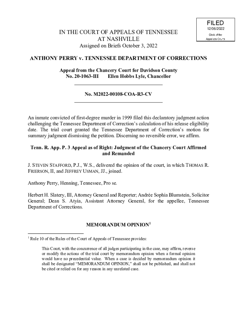 Get the free Anthony Perry v. Tennessee Department of Corrections :: 2022 ...