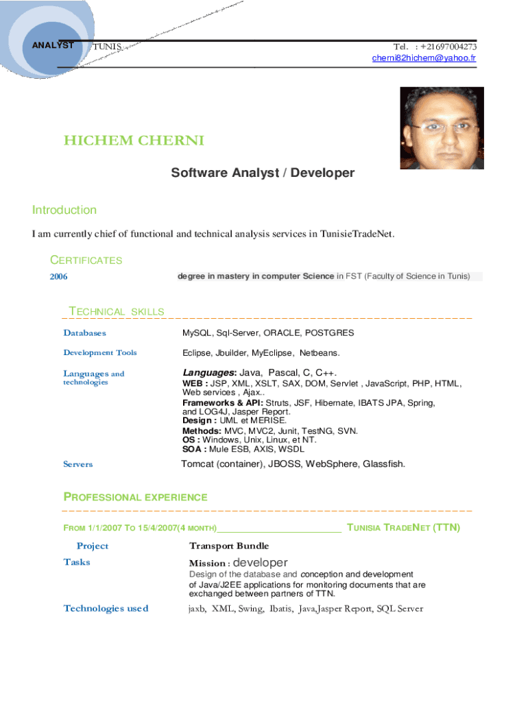 I am currently chief of functional and technical analysis services in TunisieTradeNet.