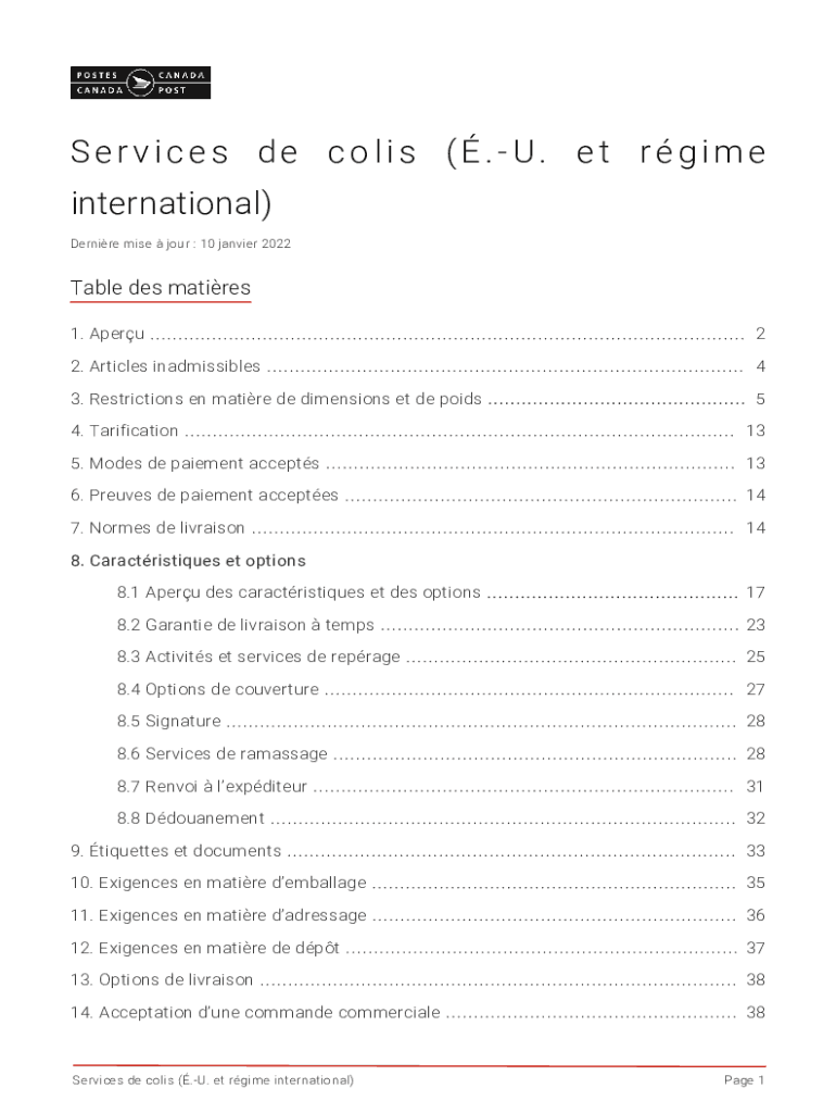 Services de Colin (. U. ET regime international) Desire mile four : 10 Janvier 2022Table DES matures 1. Aperu22. Articles inadmissibles43. Restrictions en mature DE dimensions et de poids54. Tarification135.