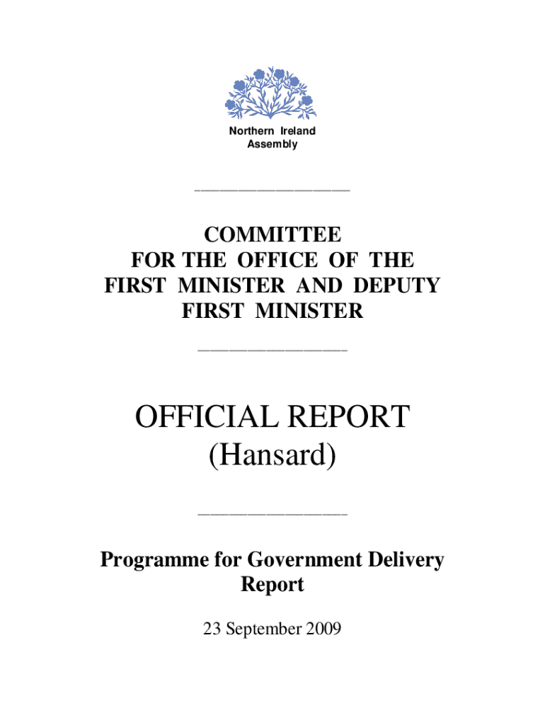 Northern Ireland Assembly___COMMITTEE FOR THE OFFICE OF THE FIRST MINISTER AND DEPUTY FIRST MINISTER ___OFFICIAL REPORT (Mansard) ___Program for Government Delivery Report 23 September 2009NORTHERN