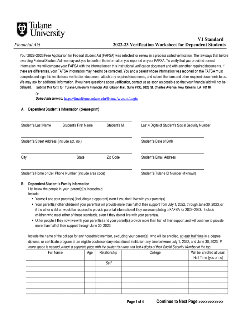 Get the free Financial Aid V1 Standard 2022-23 Verification Worksheet for ... - financialaid tulane