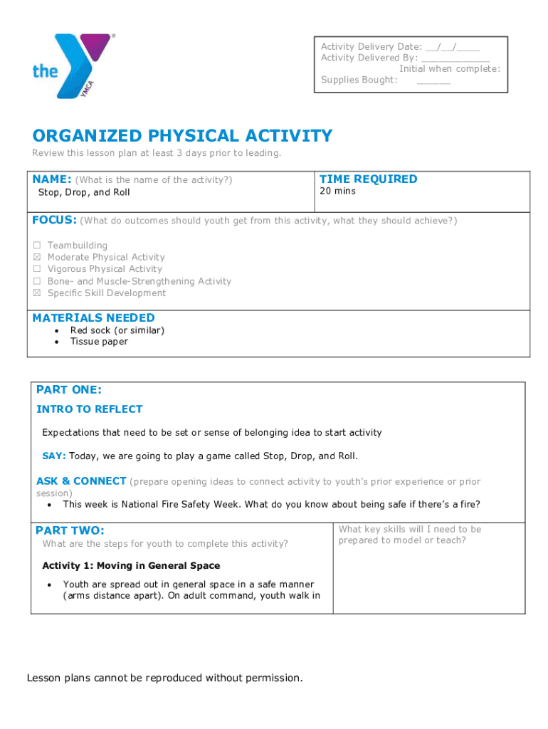 Organized Physical Activity is not the form you're looking for?Search for another form here.