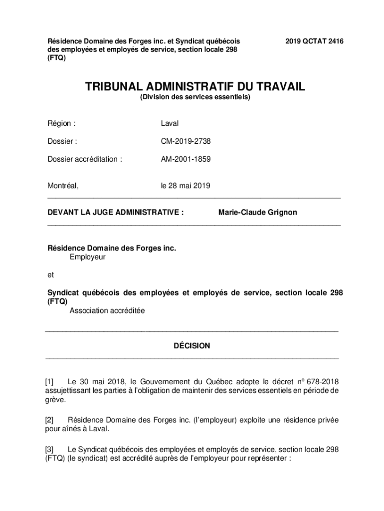 (FTQ)2019 QC TAT 2416TRIBUNAL ADMINISTRATION DU TRAVAIL