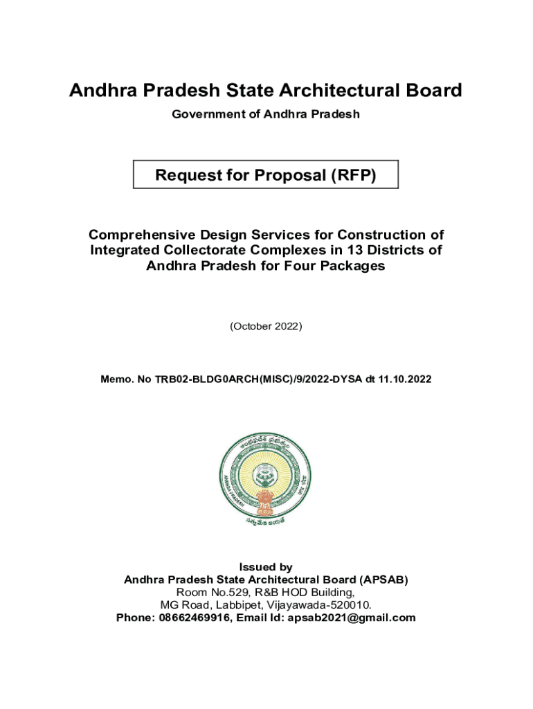 Andhra Pradesh State Architectural Board Government of Andhra PradeshRequest for Proposal (RFP)Comprehensive Design Services for Construction of Integrated Collect orate Complexes in 13 Districts