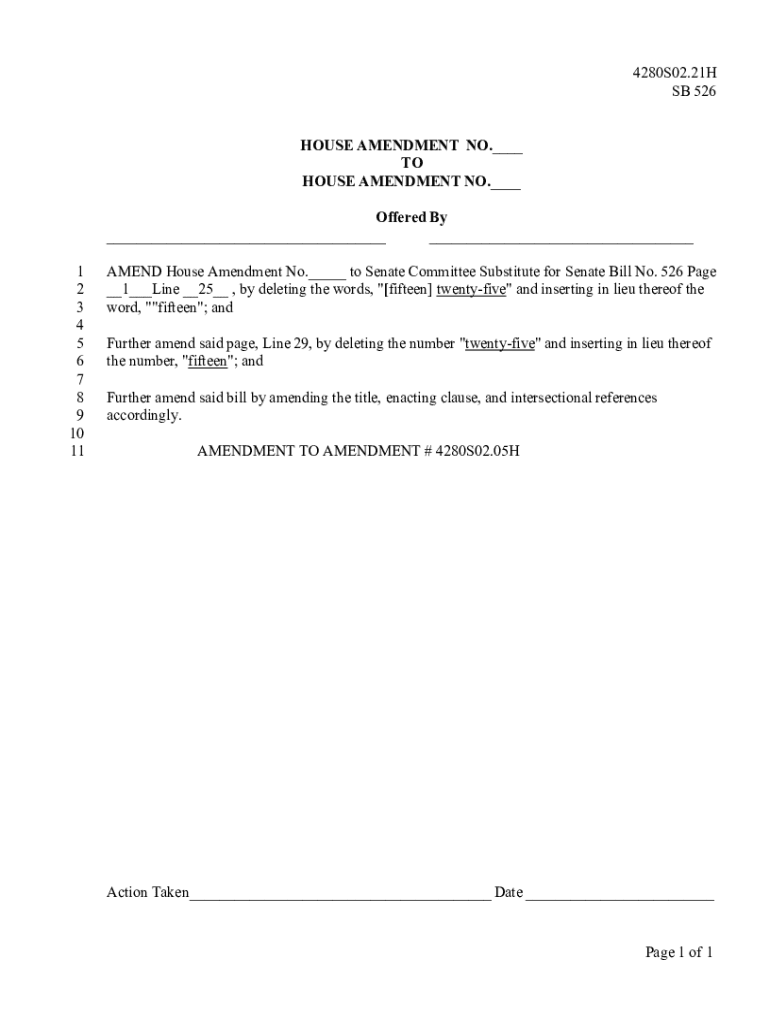 Get the free 4280S02.21H SB 526 HOUSE AMENDMENT NO. - house mo