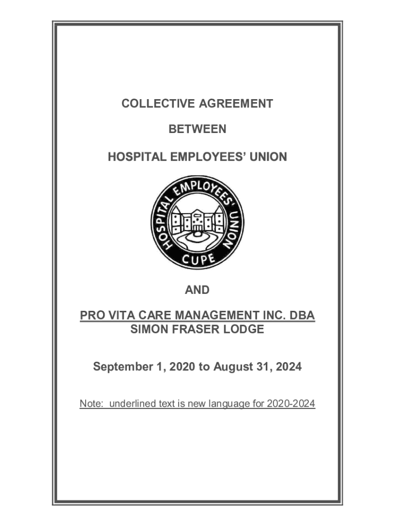 COLLECTIVE AGREEMENT BETWEEN AND PRO VITA CARE MANAGEMENT INC. DBA SIMON FRASER LODGE September 1, 2020, to August 31, 2024 Note: underlined text is new language for 20202024Simon Fraser Lodge 2410