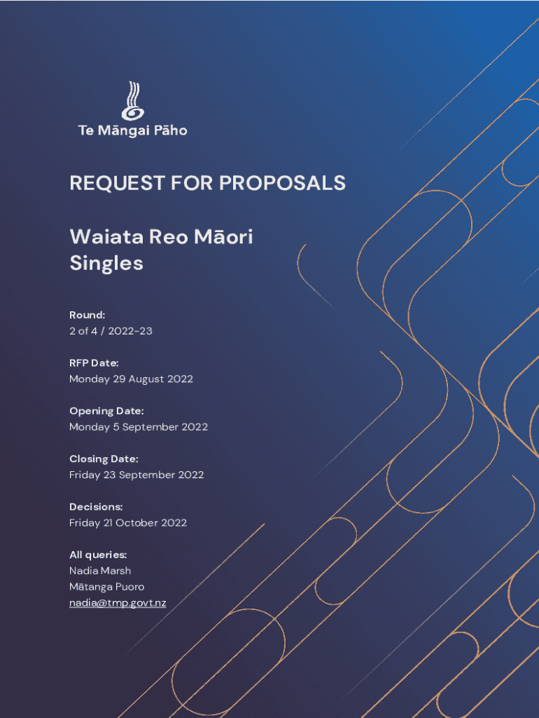REQUEST FOR PROPOSALS Wait Red More Singles Round: 2 of 4 / 202223 RFP Date: Monday 29 August 2022 Opening Date: Monday 5 September 2022 Closing Date: Friday 23 September 2022 Decisions: Friday 21