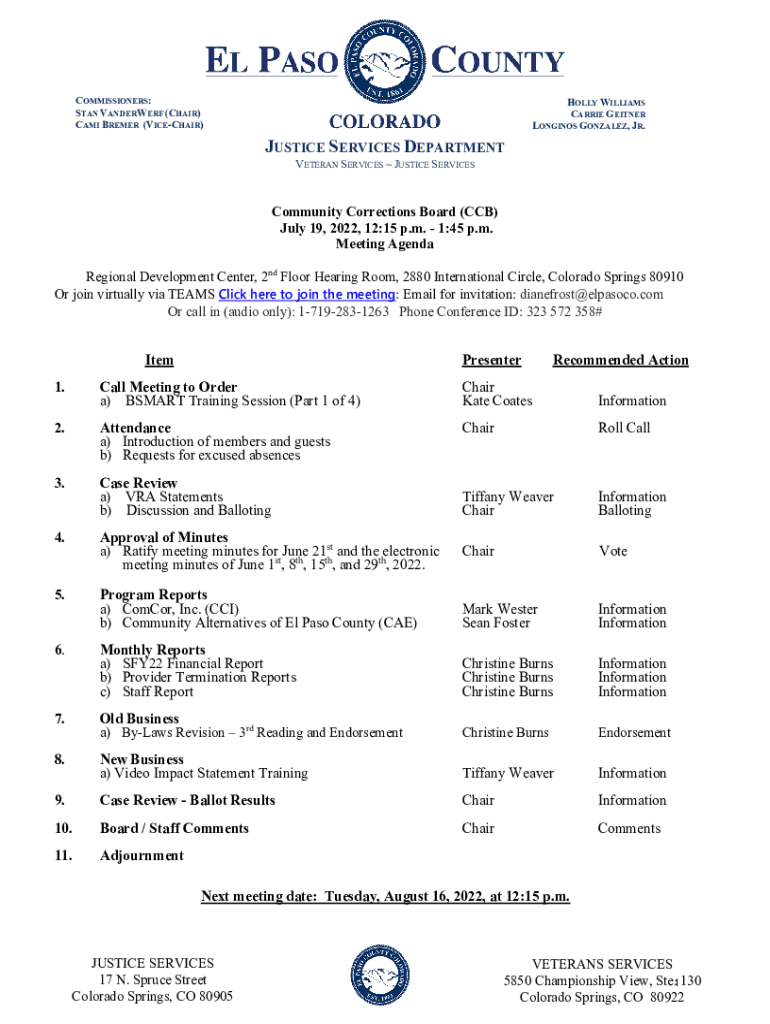 VETERAN SERVICES JUSTICE SERVICESCommunity Corrections Board