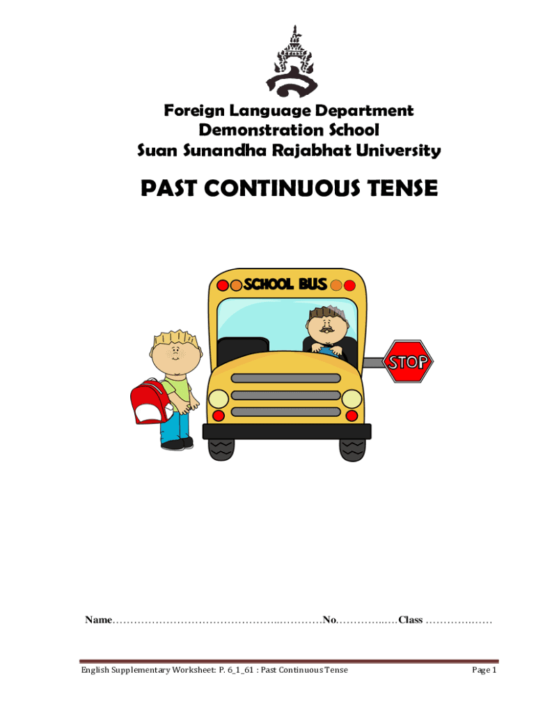 San Sandra Rajah UniversityPAST CONTINUOUS Teenage. No... Class. English Supplementary Worksheet: P. 6_1_61 : Past Continuous Tense Page 1Past Continuous