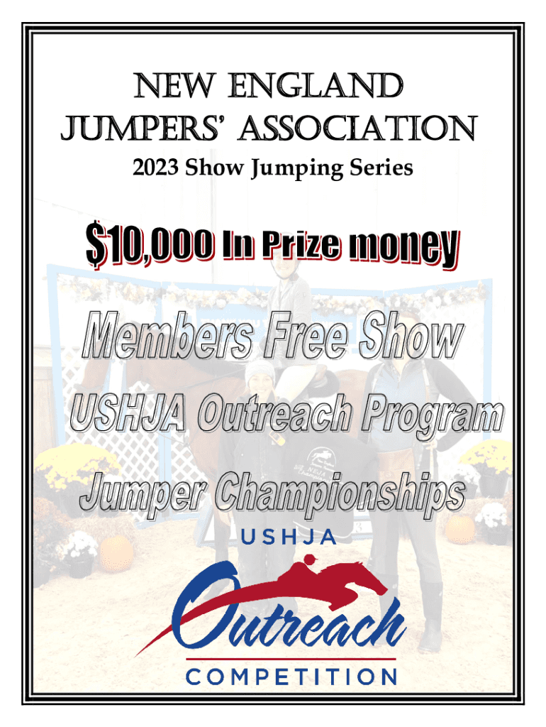 New England Jumpers Association 2023 Show Jumping Series2023 Event Schedule Jan 21st & 22ndDom Scram Clinic at Sassy Strides Equestrian Jan 28th2022 Banquet & Fundraiser AT Ramada Inn, Lewiston ME