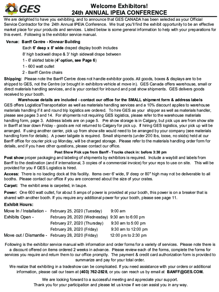 Welcome Exhibitors! 24th ANNUAL IP EIA CONFERENCE We are delighted to have you exhibiting, and to announce that GES CANADA has been selected as your Official Service Contractor for the 24th Annual