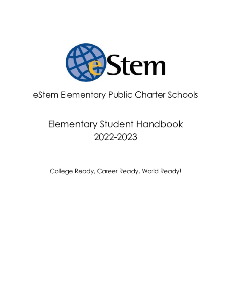 Stem Elementary Public Charter SchoolsElementary Student Handbook 20222023College Ready, Career Ready, World Ready! Welcome to stem Public Charter Schools! Thank you for choosing to become a member
