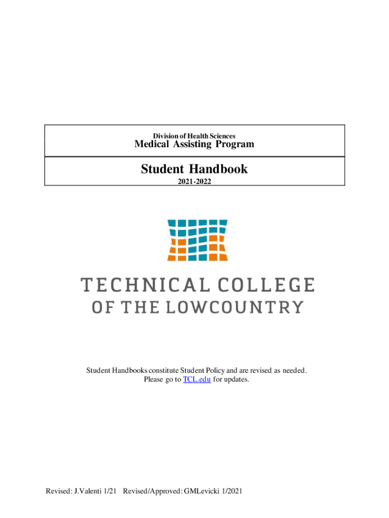 Division of Health SciencesMedical Assisting ProgramStudent Handbook 20212022Student Handbooks constitute Student Policy and are revised as needed. Please go to TCL.edu for updates. Revised: J. Valenti