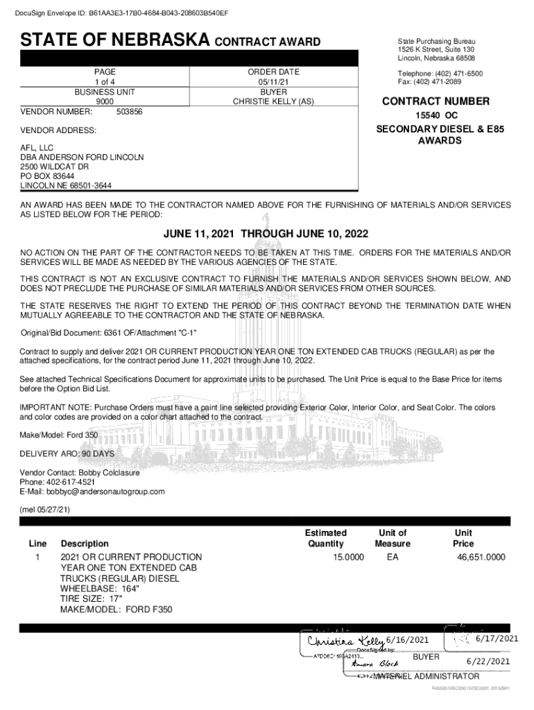 DocuSign Envelope ID: B61AA3E317B04684B043208603B540EFSTATE OF NEBRASKA CONTRACT AWARD PAGE 1 of 4 BUSINESS UNIT 9000 VENDOR NUMBER: 503856State Purchasing Bureau 1526 K Street, Suite 130 Lincoln,
