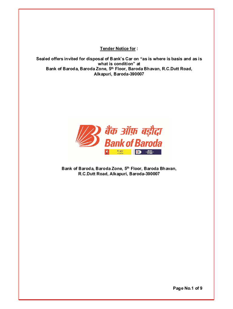 Get the free Notice inviting tender for disposal of Bank's Car