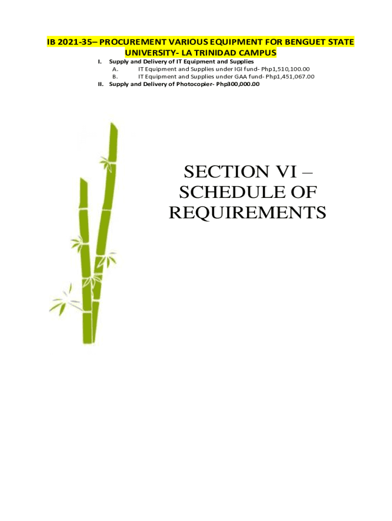 IB 202135 PROCUREMENT VARIOUS EQUIPMENT FOR BANQUET STATE UNIVERSITY LA TRINIDAD CAMPUS I. Supply and Delivery of IT Equipment and Supplies A. IT Equipment and Supplies under IGI fund Php1,510,100.00