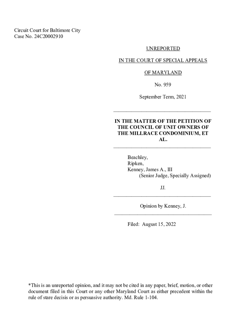 Circuit Court for Baltimore City Case No. 24C20002910 UNREPORTED IN THE COURT OF SPECIAL APPEALS OF MARYLAND No. 959 September Term, 2021 ___ IN THE MATTER OF THE PETITION OF THE COUNCIL OF UNIT OWNERS