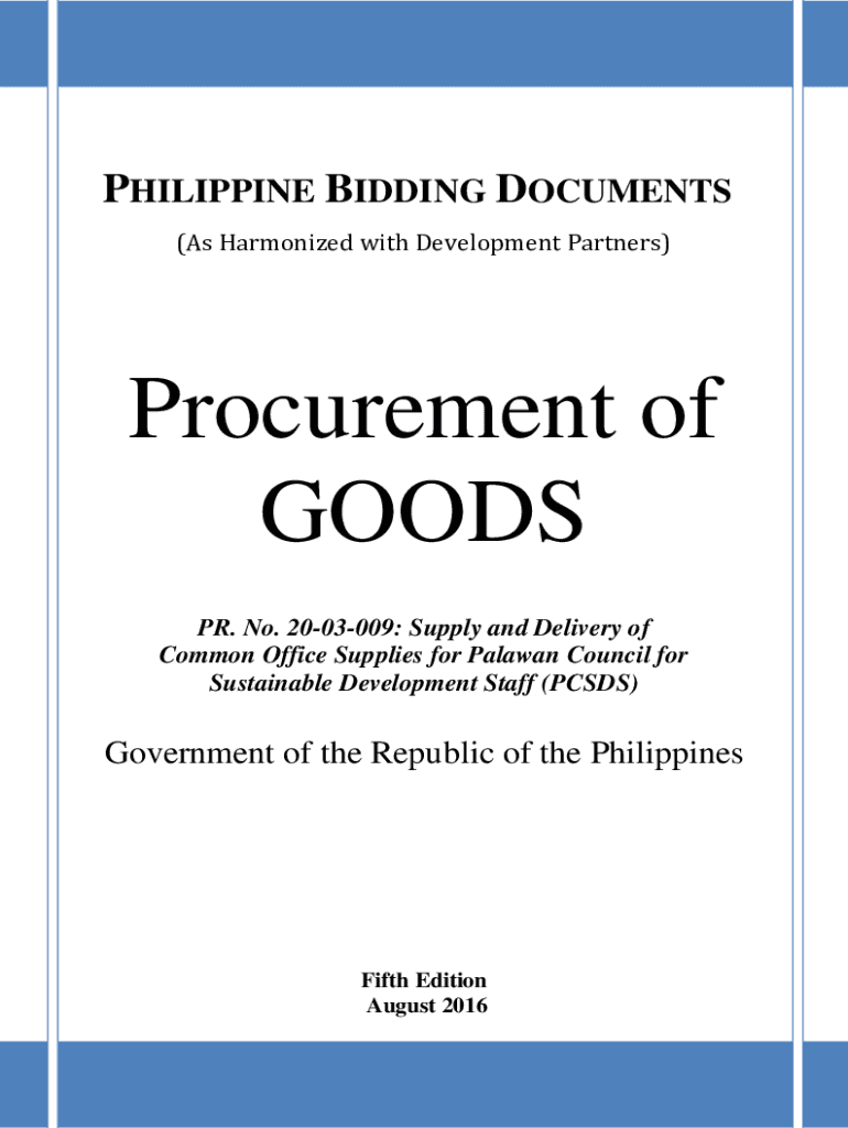 Get the free PHILIPPINE BIDDING DOCUMENTS - Ospital ng Palawan - pcsd gov