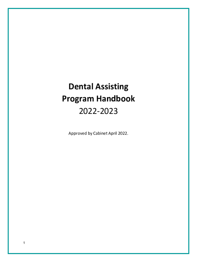 Dental Assisting Program Handbook 20222023 Approved by Cabinet April 2022.1Welcome to Western Dakota Technical Colleges Dental Assisting Program! The intention of this document is to provide students