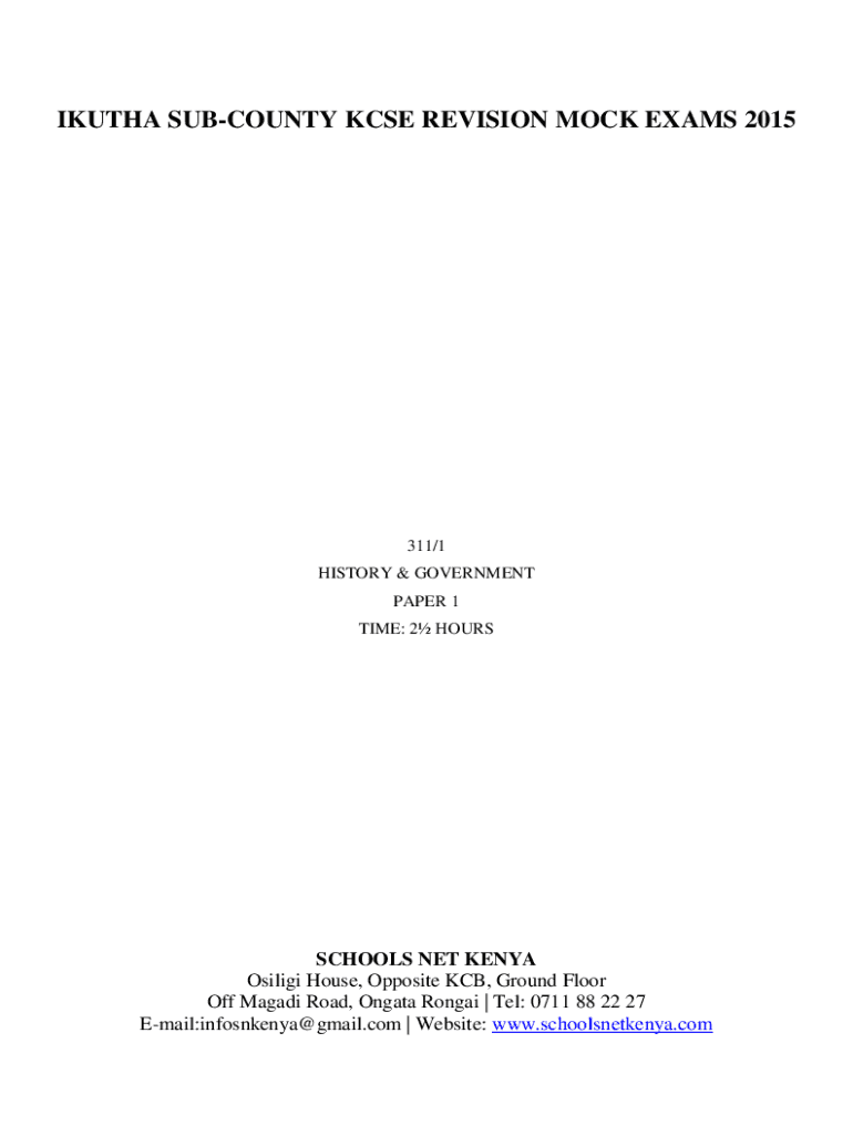 SOUTH COUNTY CSE REVISION MOCK EXAMS 2015311/1 HISTORY & GOVERNMENT PAPER 1 TIME: 2 HOMESCHOOLS NET KENYA Silica House, Opposite KCB, First Floor Off Malawi Road, Ronnie | Tel: 0711 88 22 27 Email:infosnkenya@gmail.com