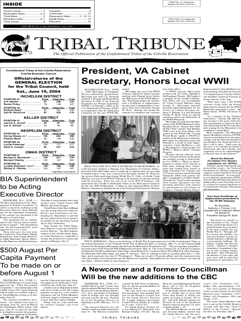 PR SRT STD U.S. Postage Paid Esteem, WA 99155 Permit No. 2INSIDE Council Corner...............................2 Reservation News .....................3, 4 Tribal News....................................5