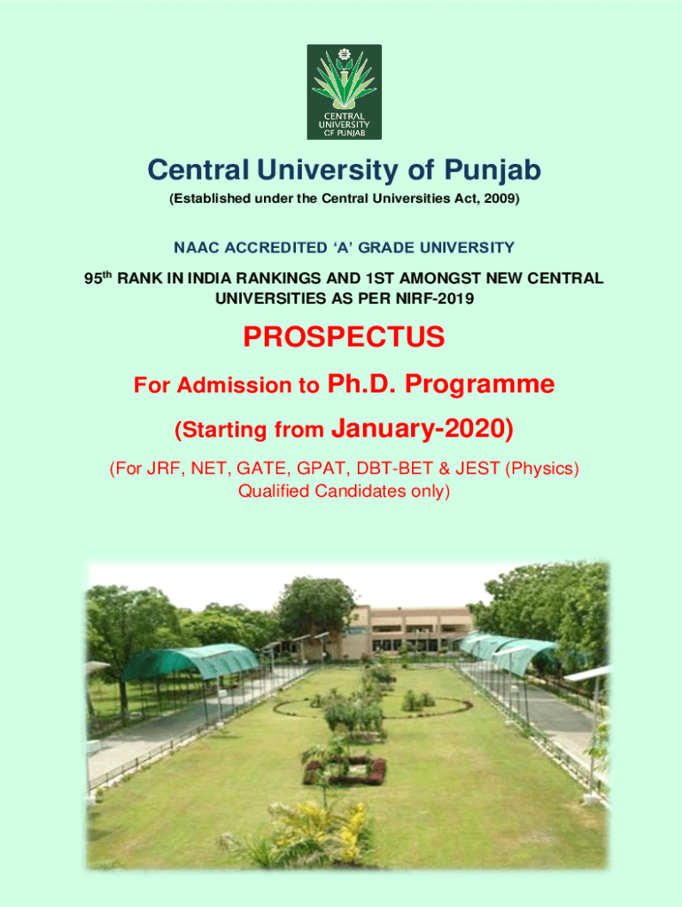 Central University of Punjab (Established under the Central Universities Act, 2009)NAACP ACCREDITED A GRADE UNIVERSITY 95th RANK IN INDIA RANKINGS AND 1ST AMONGST NEW CENTRAL UNIVERSITIES AS PER NIRF2019PROSPECTUS