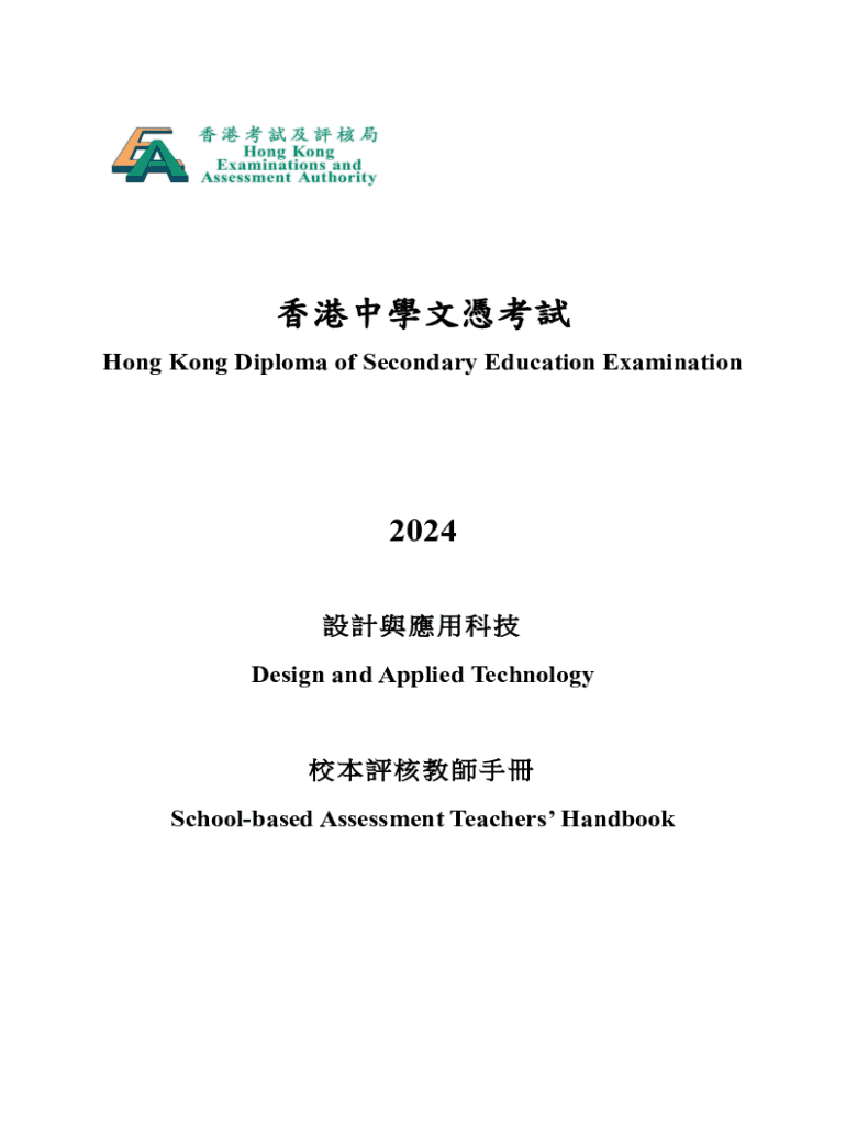 Hong Kong Diploma of Secondary Education Examination2024 Design and Applied Technology School based Assessment Teachers HandbookTABLE OF CONTENTSPagePreface1Notes on Changes to the Handbook1Chapter