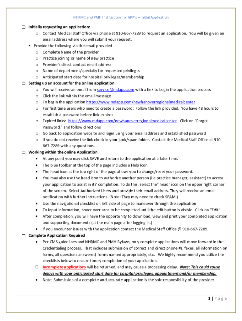 Get the free NHRMC and PMH Instructions for APP'sInitial Application