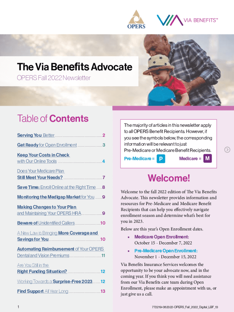 The Via Benefits Advocate OPERA Fall 2022 NewsletterTable of Contents Serving You Better. . . . . . . . . . . . . . . . . . . . . . . . . . . . . . . . . . . . . . . . . . . . . . . . . . . . . .