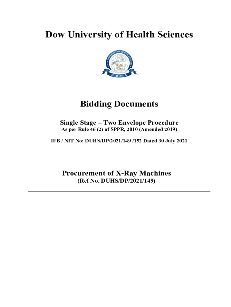 Dow University of Health SciencesBidding Documents Single Stage Two Envelope Procedure As per Rule 46 (2) of SPUR, 2010 (Amended 2019) IF / NIT No: DUES/DP/2021/149 /152 Dated 30 July 2021Procurement