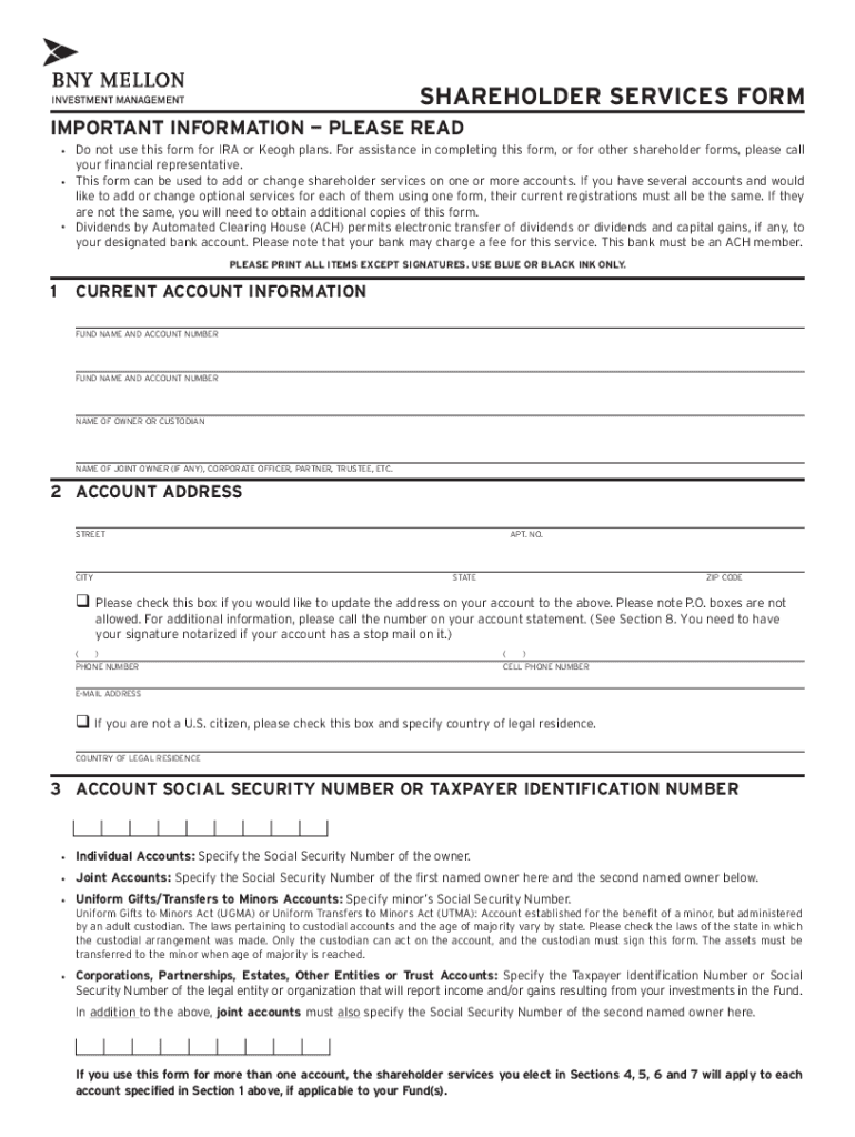 SHAREHOLDER SERVICES FORM IMPORTANT INFORMATION PLEASE Radio not use this form for IRA or Keogh plans. For assistance in completing this form, or for other shareholder forms, please call your financial