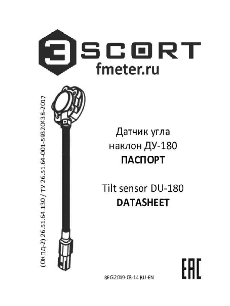 (2) 26.51.64.130 / 26.51.64001593204382017 180 Tilt sensor DU180 DATASHEETREG 20190314 RUE NRU .180012.000. 20190314 RUN 61. 1.1. () 180