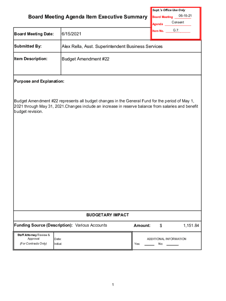 Get the free Budget Amendment #22