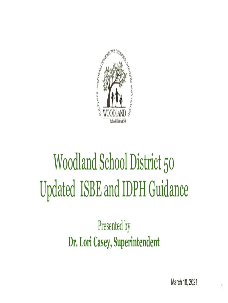Woodland School District 50 Updated ISBNs and DPH Guidance Presented by Dr. Lori Casey, Superintendent March 18, 20211Division of Students Measurement7 Day Rolling Average Incident Rate 60030, 60031,