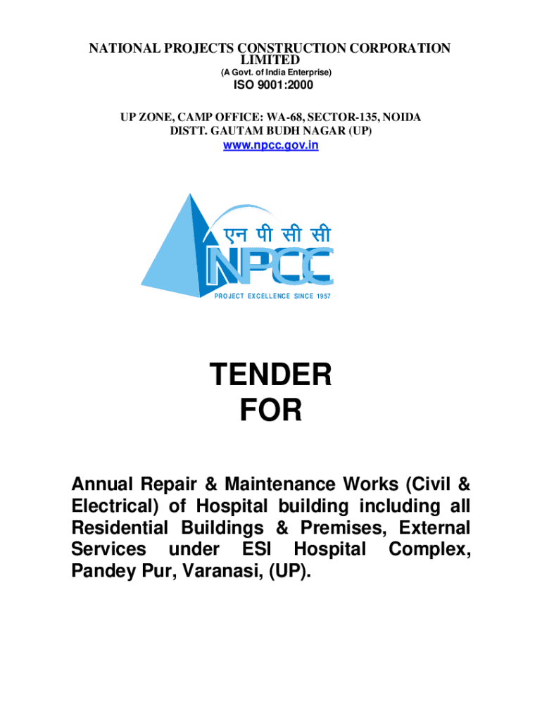 NATIONAL PROJECTS CONSTRUCTION CORPORATION LIMITED (A Govt. of India Enterprise)ISO 9001:2000 UP ZONE, CAMP OFFICE: WA68, SECTOR135, NOIDA DIST. GAUTAM BUSH NAGAR (UP) www.npcc.gov.inNPCC P R ONE
