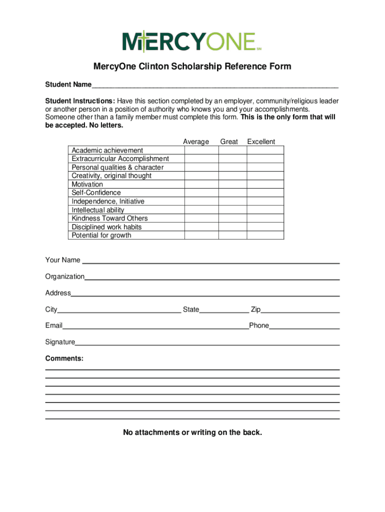 Everyone Clinton Scholarship Reference Form Student Name___ Student Instructions: Have this section completed by an employer, community/religious leader or another person in a position of authority