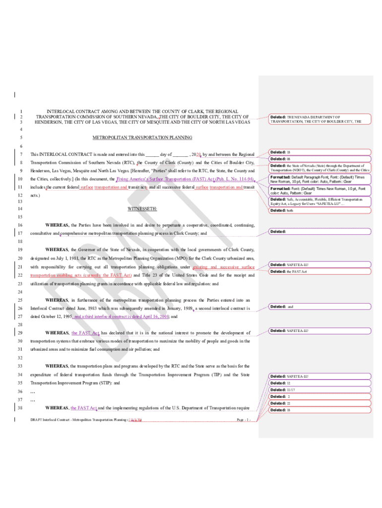 1 2 3INTERLOCAL CONTRACT AMONG AND BETWEEN THE COUNTY OF CLARK, THE REGIONAL TRANSPORTATION COMMISSION OF SOUTHERN NEVADA, THE CITY OF BOULDER CITY, THE CITY OF HENDERSON, THE CITY OF LAS VEGAS, THE