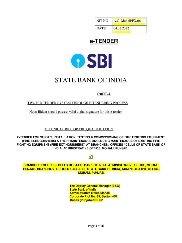 NIT NOA. O. Moral/FX/06DATE04.02.2022eTENDERSTATE BANK OF INDIA PART TWO BID TENDER SYSTEM THROUGH TENDERING PROCESS Note: Bidder should possess valid digital signature for this etenderTECHNICAL BID
