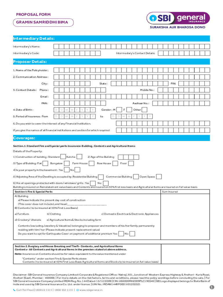 Get the free proposal form gramin samriddhi bima - SBI General Insurance