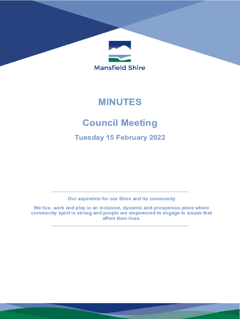 MINUTES Council Meeting Tuesday 15 February 2022___ Our aspiration for our Shire and its community We live, work and play in an inclusive, dynamic and prosperous place where community spirit is strong